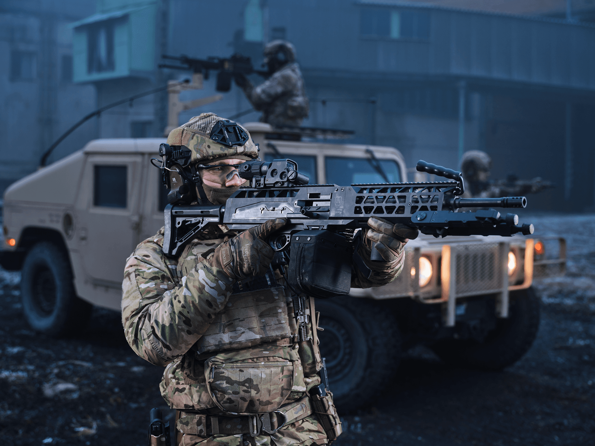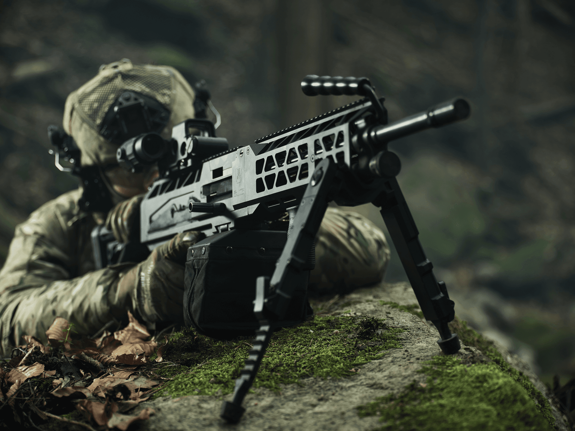 The MK24 machine gun is distinguished by its lightweight yet robust recoil-reducing design, which enables the operator to effectively engage distant targets with precision and efficiency.